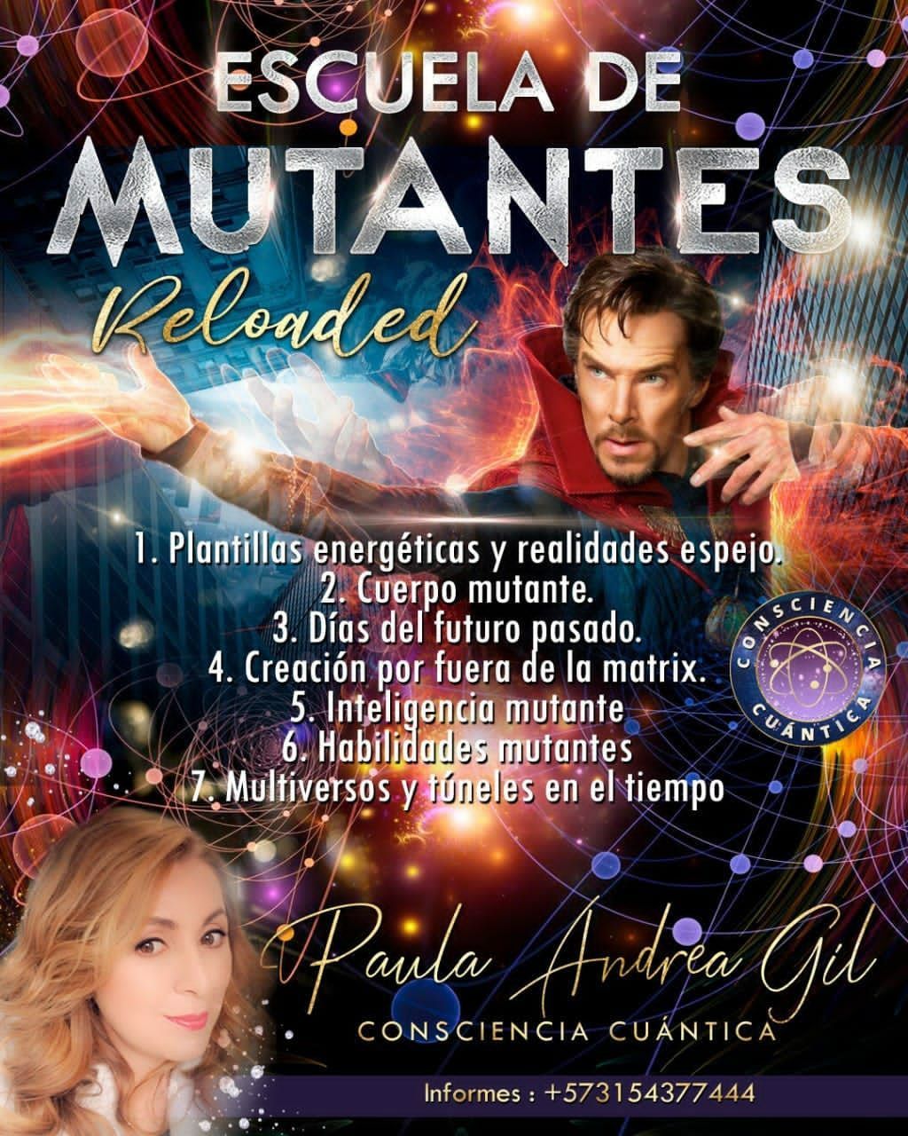 Continúa explorando las infinitas posibilidades del mundo cuántico y despierta el mago cuántico que hay en ti con Escuela de Mutantes Reloaded, Escuela de Mutantes habilidades psíquicas, Escuela de Magia y Superpoderes Cuánticos. Estas clases no tienen requisitos y te permitirán profundizar en distintos temas cuánticos, así como explorar tus superpoderes.